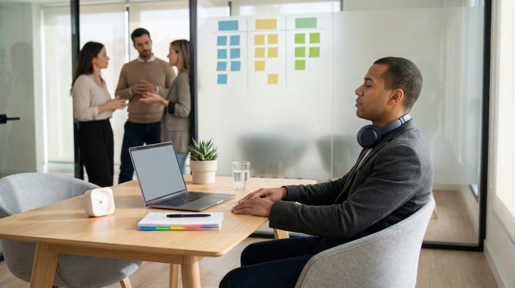 Passo 2: pratique pausa respiratória de 60 segundos antes de responder em e-mails difíceis. Isso reduz reações impulsivas.