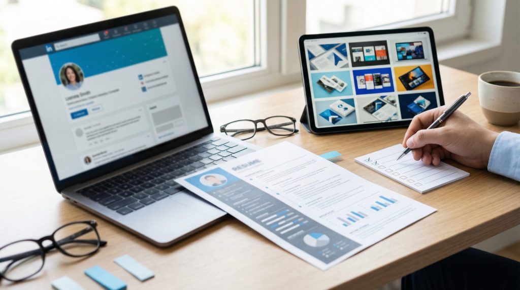 Regra prática: trate currículo, LinkedIn e portfólio como uma única narrativa distribuída em três formatos.